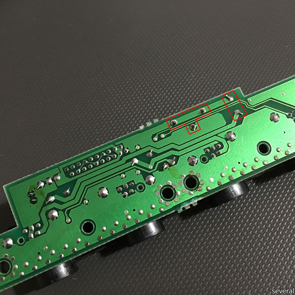 Yukarda pil yuvası ve direncin lehim noktalarını görebilirsiniz. Pil'i (-) ve (+) kutuplarını sırasıyla ısıtarak esnetmek yoluyla yerinden kolayca çıkartabiliyorsunuz. Direnç çok daha basit bir şekilde yerinden çıkıyor.