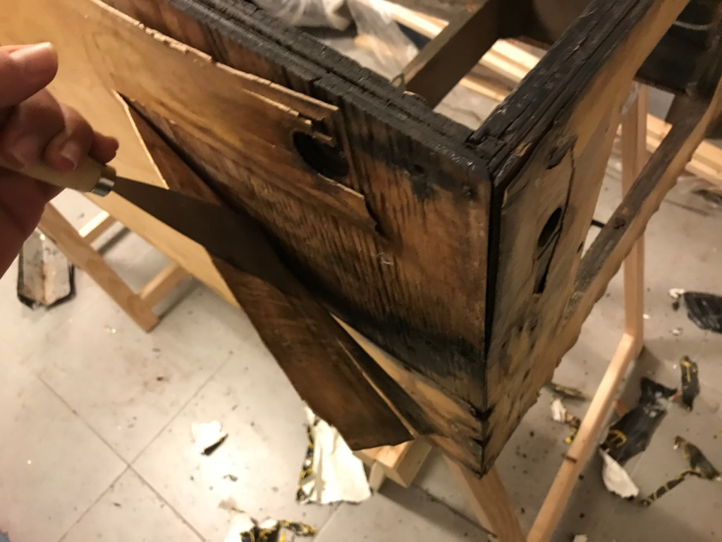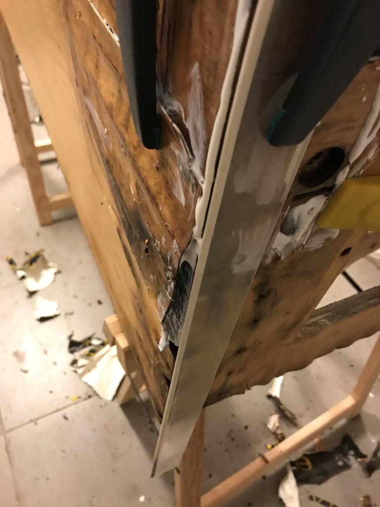 Ve backbox'ın arka tahtası. Bunu kurtarmanın herhangi bir yolu yok. Tamamen çöp olmuş…