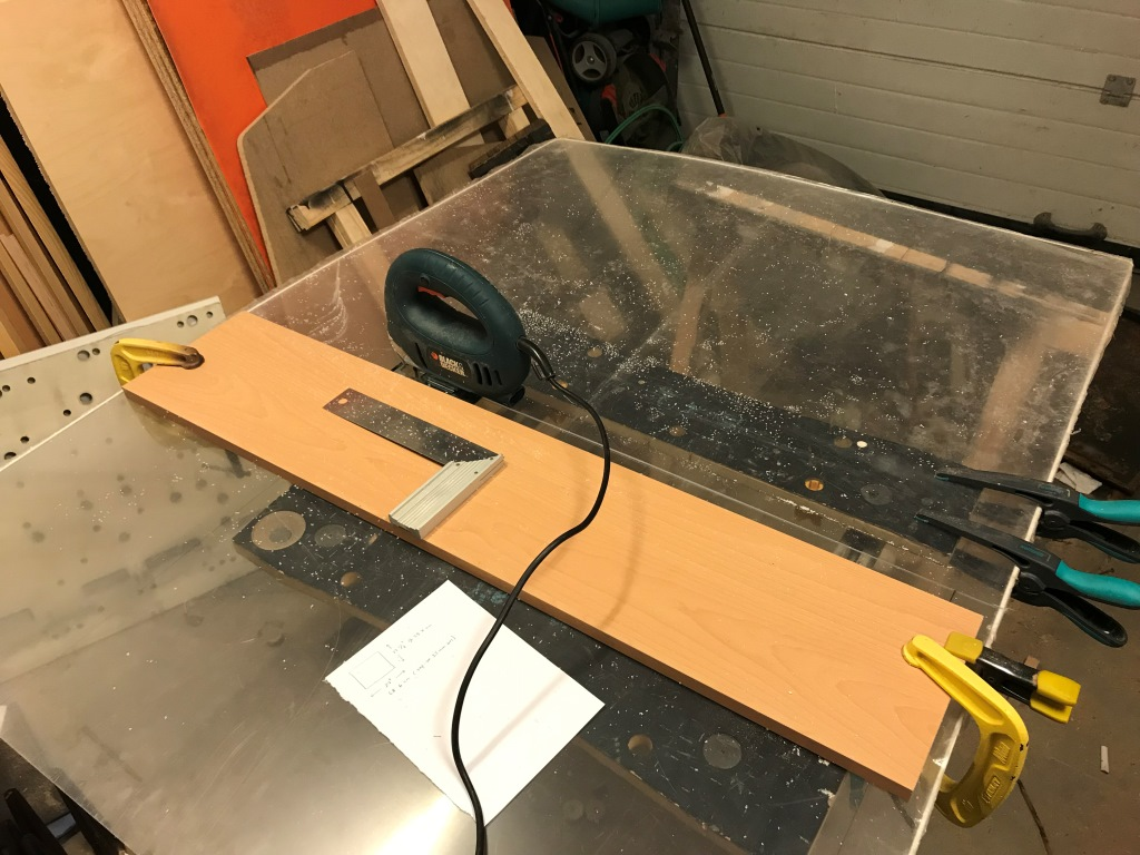 Neyse, uygun kalınlıkta sıfır paneli elde edince eski paneli bunun üzerine koyuyorum, en alta da matkap çapağı oluşmasın diye kenardaki fazlalık suntalardan koyuyorum ve mengenelerle bu sandviçi sıkıştırıyorum ki gevremiş panelin delikleri yeni panele iyice yaklaşsın…