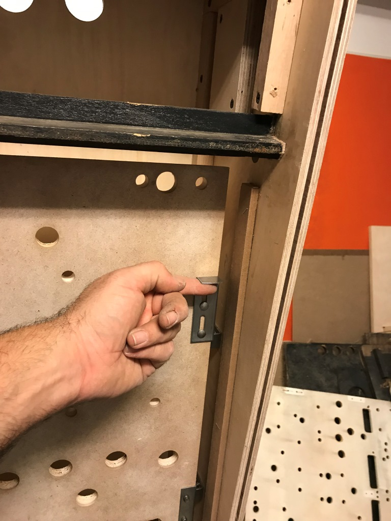 Şimdi sıra insert board'u yerinde tutacak kilit mekanizmalarını monte etmeye geldi. Onları da eski backbox'daki delik izlerinden ve yenisini prova ederek yerlerini belirliyorum ve monte ediyorum.