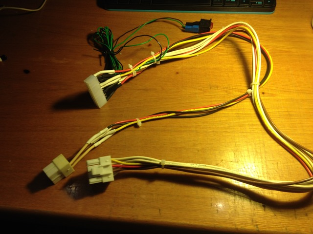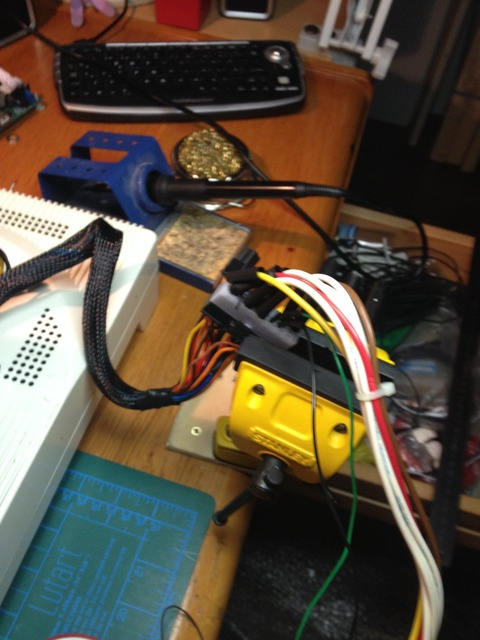 Daha sonra elimdeki Naomi ile birlikte gelen güç kablolarının diğer uçlarını keserek standart PC güç kaynağına bağlanabilir bir sokete monte ettim.