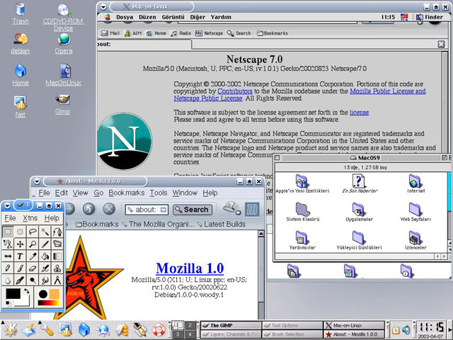 MacOS9 Türkçe'i oraya kurdum. MacOnLinux'u CD'den boot ettirip doğrudan