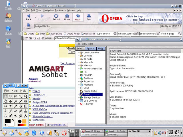 Amiga Emülasyonu UAE: Linux PPC için en son UAE sürümü 0.8.22. Workbench 3.1 ve Amiga 1200/500 oyunlarını çalıştırmak için ideal. WinUAE gibi JIT emülasyonu yapmıyor..(PPC için 68K jit emülasyonunu kimse yazmadı nedense UAE için..Yazabilecek insanların hepsi ya OS4 ya da MorphOS'u yaziyor herhalde ondan)..040 emülasyonu A1'de JIT olmadan normal hızında..Zaten AmigaOS4'a az kaldığı için UAE'nin pek bir önemi yok..