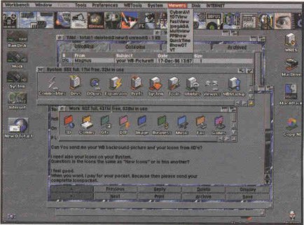 Bu hafta, aşırı istek nedeniyle önceki sayılarda tanıttığımız MagicWB, NewIcons Toolmanager gibi programlar yardımıyla yaratılan Amiga masaüstü örneklerini vermeye devam ediyoruz. Mütevazı bir donanıma sahip AGA grafik çipsetli veya grafik kartlı (Cybervision, Picasso gibi) her Amiga'da elde edebileceğiniz bu ekranlar, Amiga'nın mükemmel mizahi yapısıyla beraber "bilgisayarınızı çalıştırma" ya da "bilgisayarınızın sizi çalıştırması" gibi kavramların aksine, "bilgisayarınızla birlikte çalışma" kavramını daha iyi benimsemenizi ve zevkle çalışabileceğiniz bir masaüstüne sahip olmanızı sağlayacaktır. Bu programların shareware versiyonlarını Aminet'ten ya da Joy Computer'den (0216-3482079) edinebilirsiniz.
