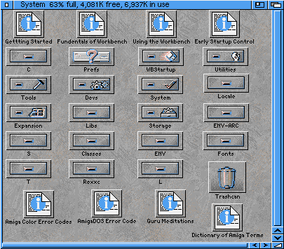 Ayrıca gizli ikonu olmayan çekmeceler vardır. Bunları görmek için sağ Amiga ve + tuşuna aynı anda basın. Veya Workbench'in "Window/Show all files" menüsünü kullanın.