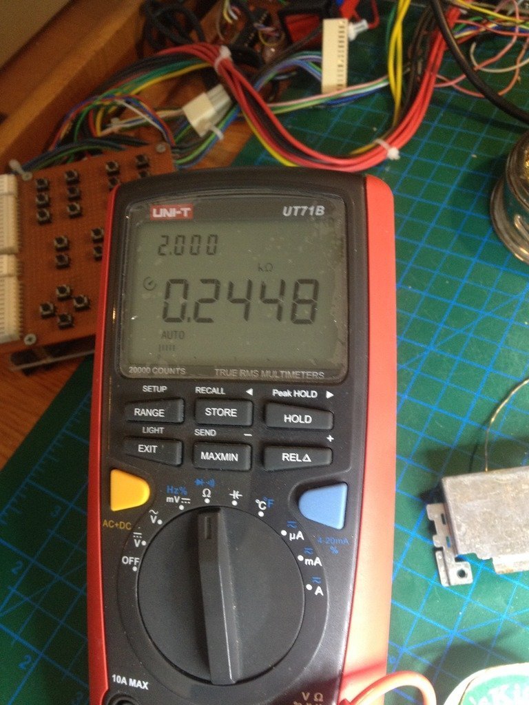 Şimdi biraz derine dalmamız gerekiyor. Bir sonraki adım olarak herhangi bir devre elemanı kısa devre yapmış mı diye incelemeye karar veriyorum. Bunun için kartuşa gelen (4) ve (-) voltaj hattını multimetrenin direnç ölçme ayarına getirip ölçüyorum.
