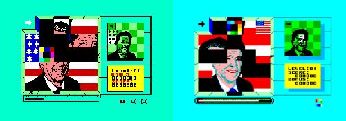 Şimdi, ilk olarak Spectrum'a "splitting images" olarak çıktı. Sonra yapımcı firma isim benzerliği "Spitting Images" davası açmış ve bu oyun bir haftada toplatılmış. Peşine  oyunun ismi "Splitting Personalities"e dönüştürülerek tekrar satışa sunulmuş. Sonrakı yıl Domark, "Spitting Images" ismini lisanslayarak ayrı bir oyun daha çıkartmıştı ki oynadığım ilk 128k oyunlardan biridir.