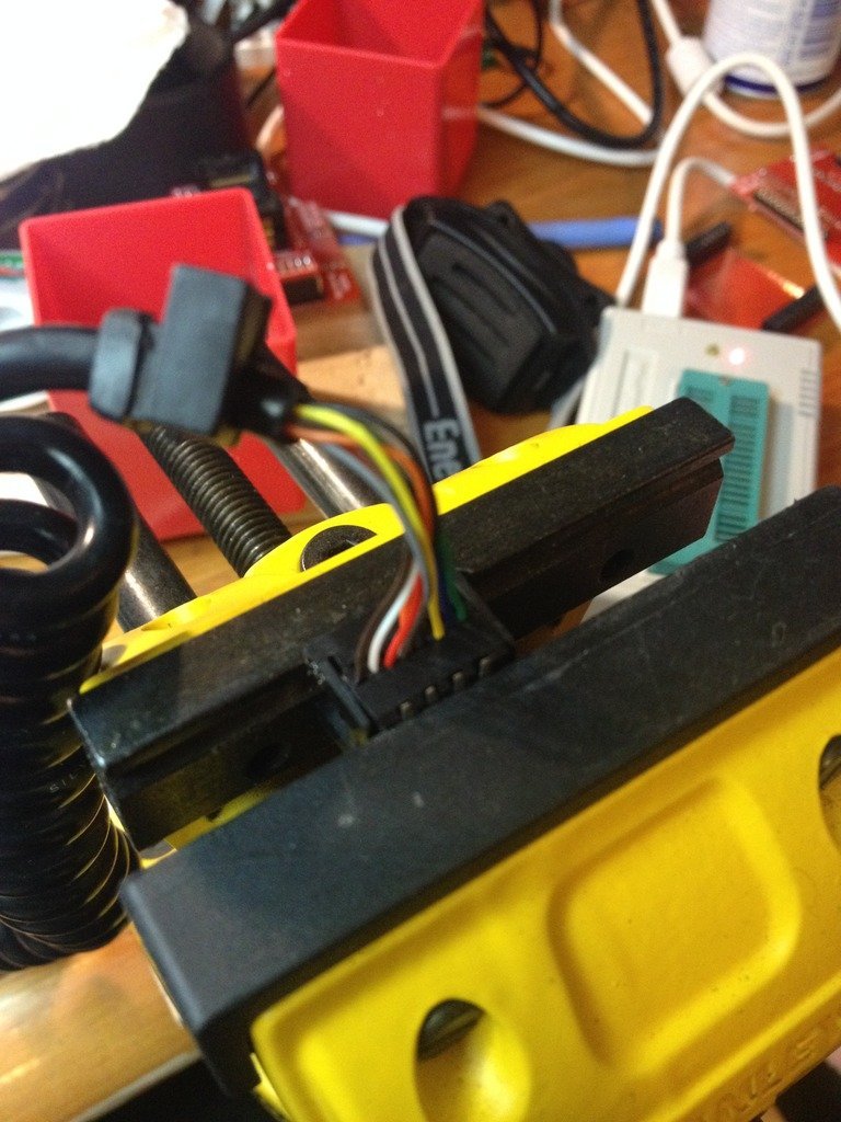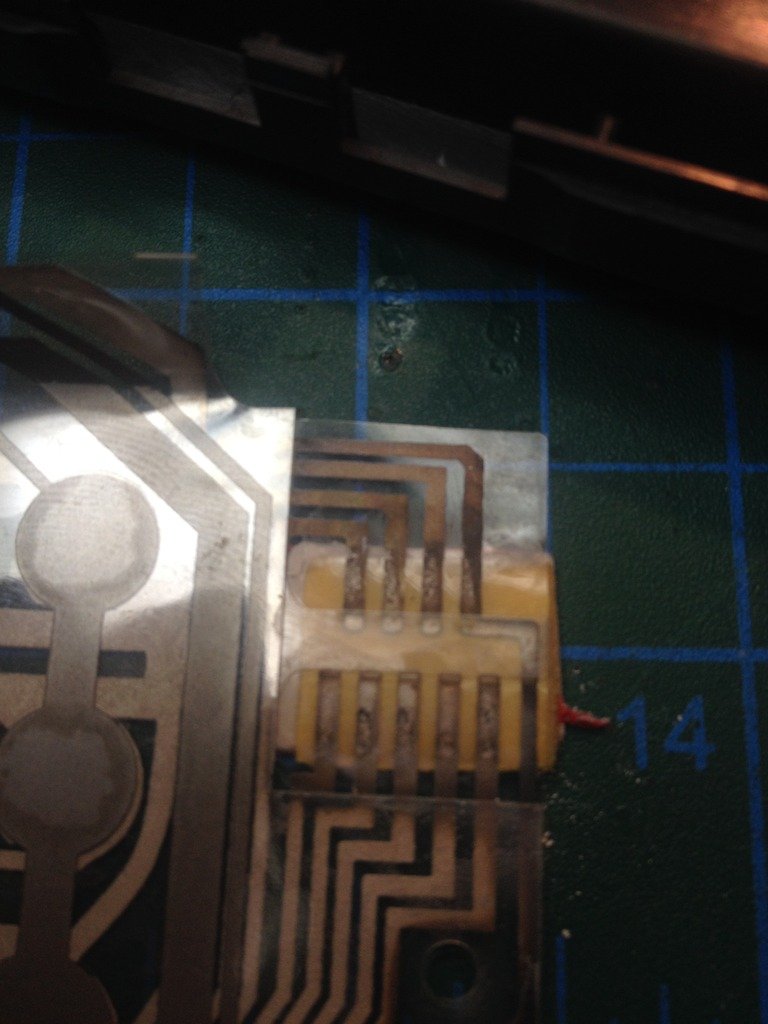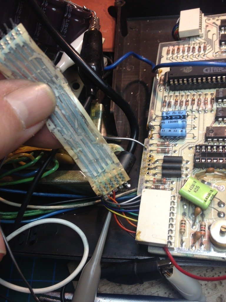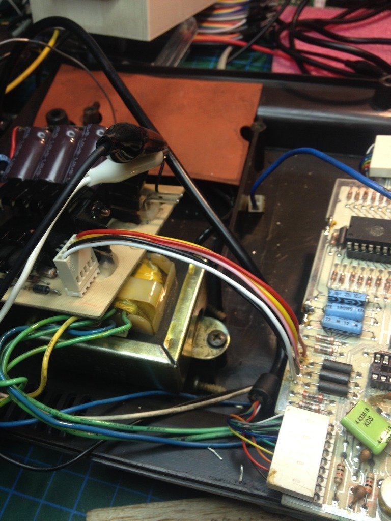 Aleti masanın üzerinde dağıttıktan sonra yaptığım testlerde logic karta gereken voltajların gitmediğini tespit ettim. Trafo ve güç kartı çalışıyordu. Neden sonra tek tek test noktalarında voltaj ölçerek (ki Mattel kullanılmadık voltaj bırakmamış bu konsolda; 5V, 12V, 24V, -2.2V) kontroller yaptım. Sonunda neden çalışmadığını buldum. Sebebi Mattel'in power kartı ile logic kartı birbirine bağlamak için seçtiği bu "ribbon" kabloymuş
