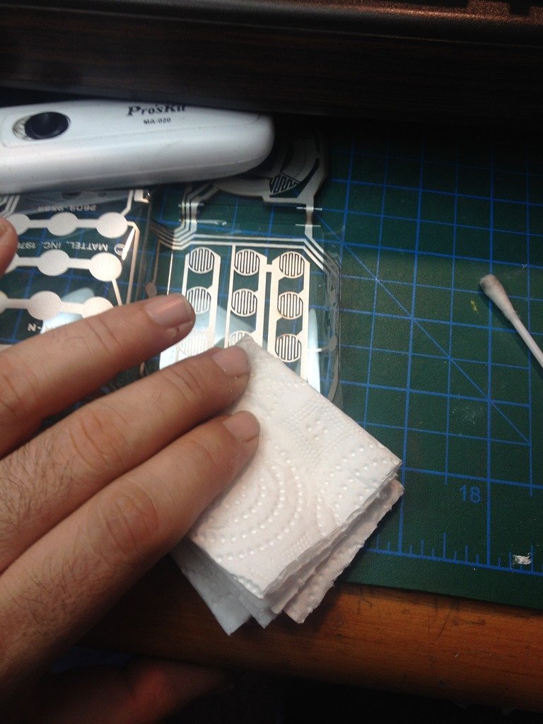 Son olarak membranın diğer yerlerini dikkatli bir şekilde alkol (IPA) ve kağıt havlu ile kibarca temizliyorum.