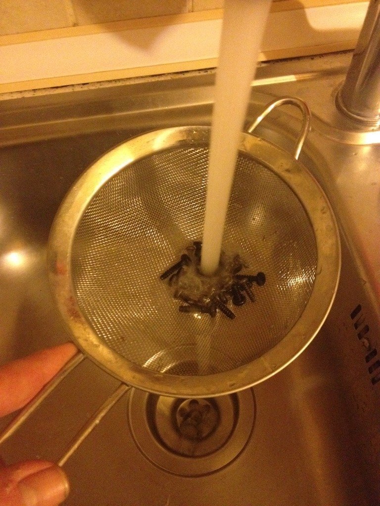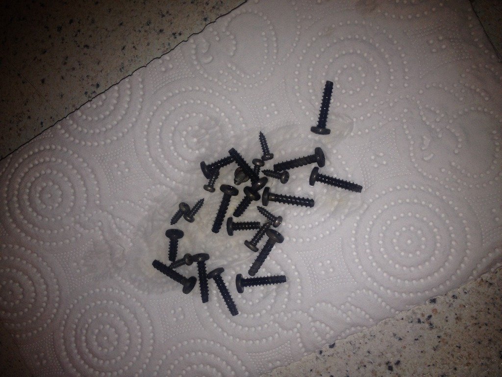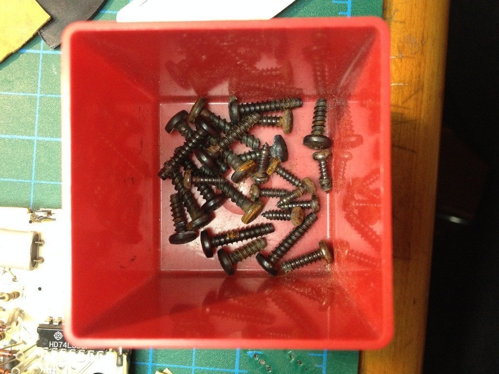 Sonra söktüğüm oldukça paslanmış vidaların hepsini bir kaba koydum...