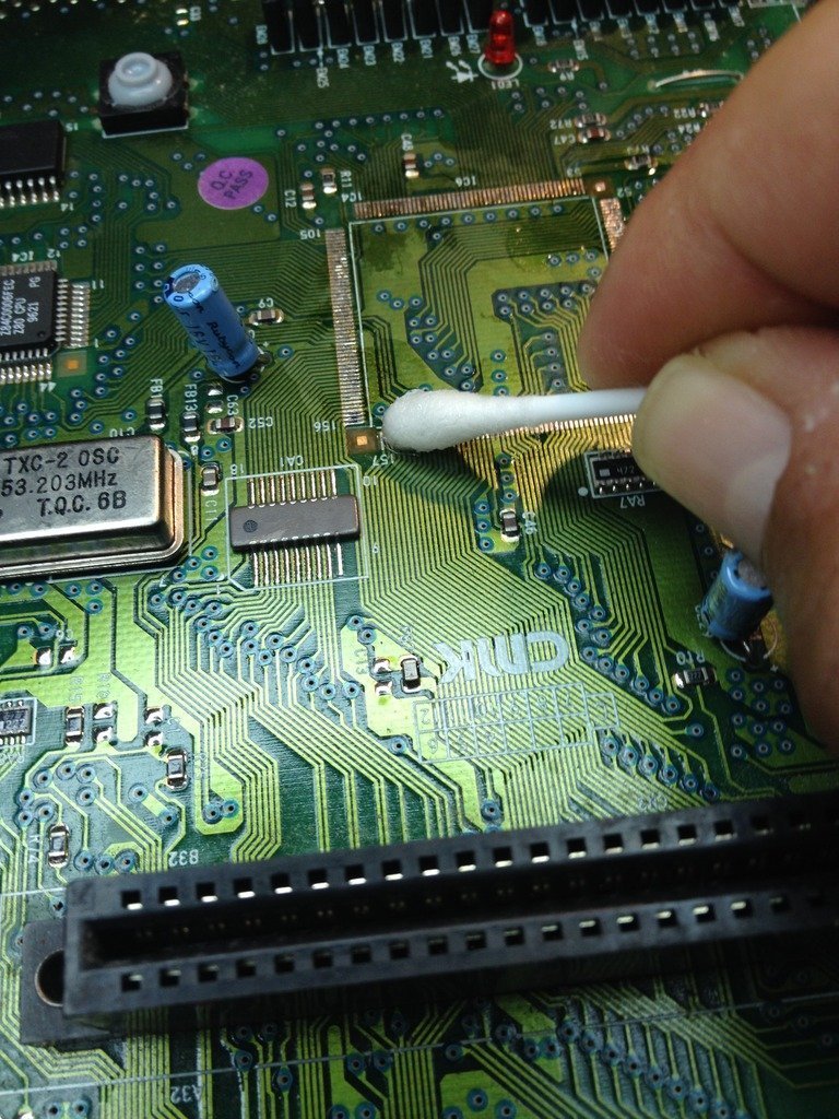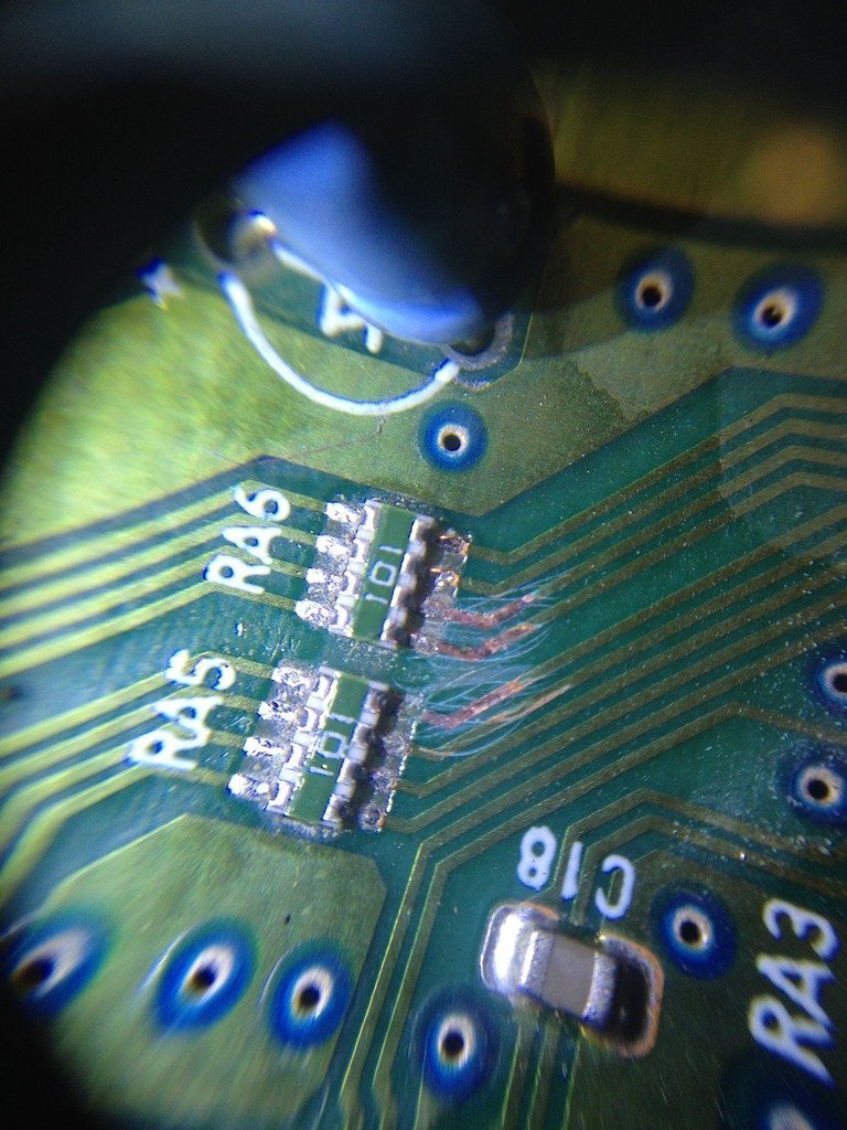 2) Sökülen yerdeki hatlara zarar vermeden üzerindeki lehimleri temizleyip yüzeyi dümdüz hale getirmek.