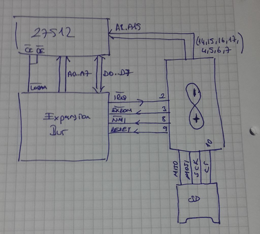 Bu durumda dual port olayını discreete olarak yapmak gerekecek, $1'lik bir SRAM kullanılabilir ama etrafta biraz lojik elemanlar olacak. Bir de bu tarz kartuşların (easy flash da dahil) bank değiştirme requestlerini yakalayabilen bir lojik de gerekiyor.