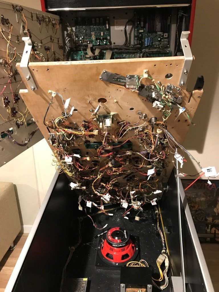 henüz boşta sallanan solenoid kablolarının ucunu izole bant ile kapattım ki bir yerlere değip kısa devre yapmasınlar. Bu şekilde tahtayı kabine yerleştirip, soketleri backbox'daki yerlerine taktım...