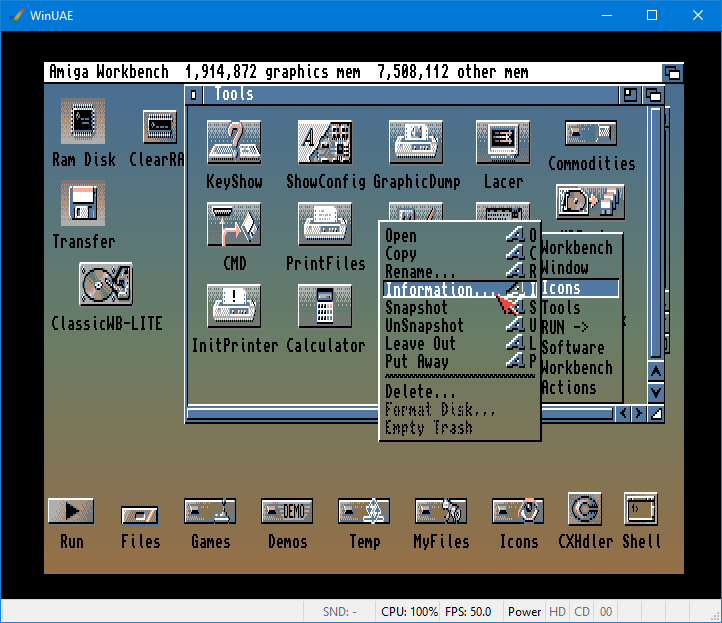 ClassicWB-LITE'a çift tıklayıp peşinden Tools çekmecesine (Amiga'da klasör veya dizin değil çekmece vardır) çift tıklıyoruz.