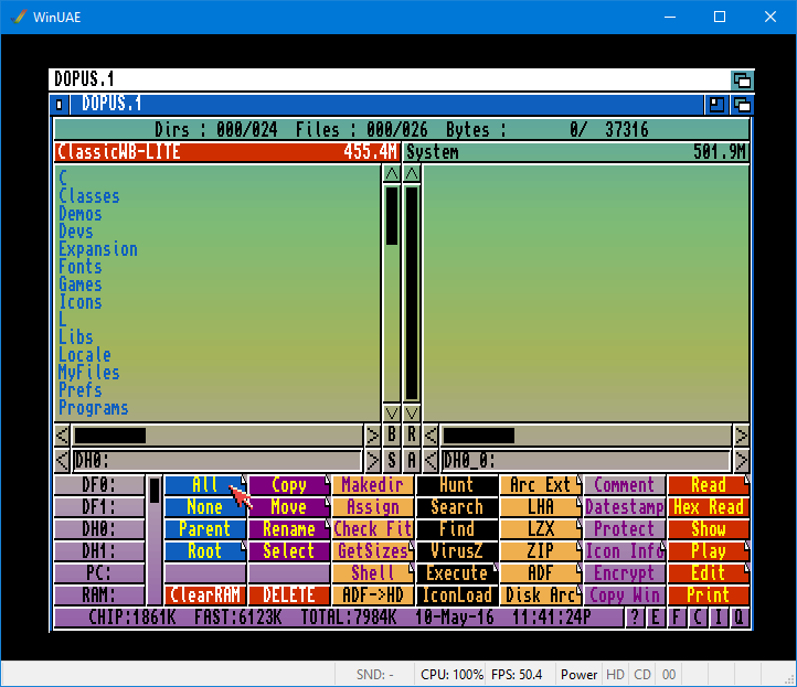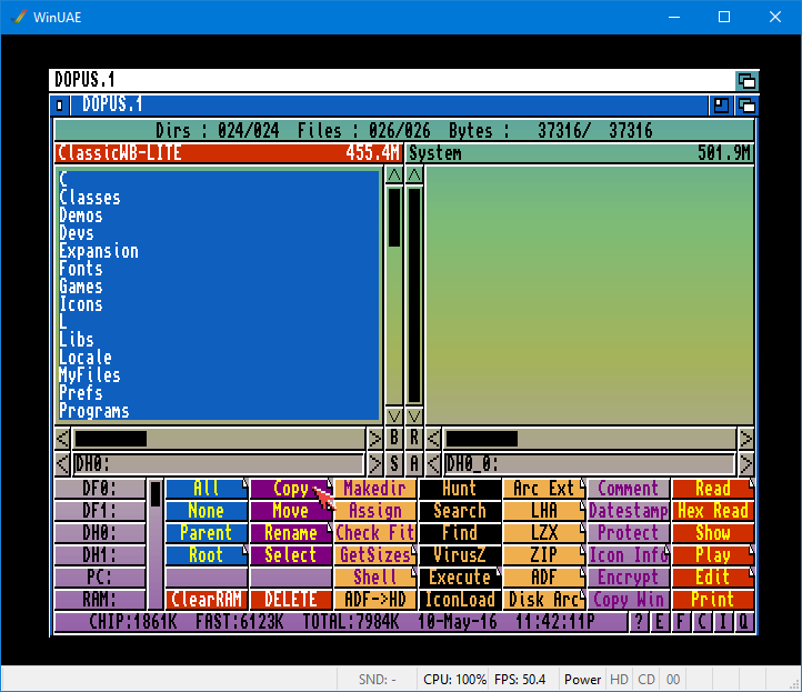 Eğer Rescue bölümü oluşturduysanız tekrar Dopus açıp bu sefer sol panelde DH0: sağ panelde DH1: açarak önce All sonra Copy ile System bölümünü Rescue bölümüne klonluyoruz.