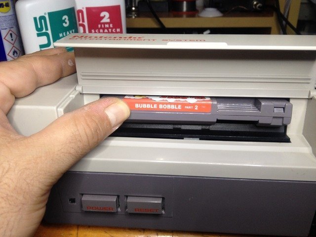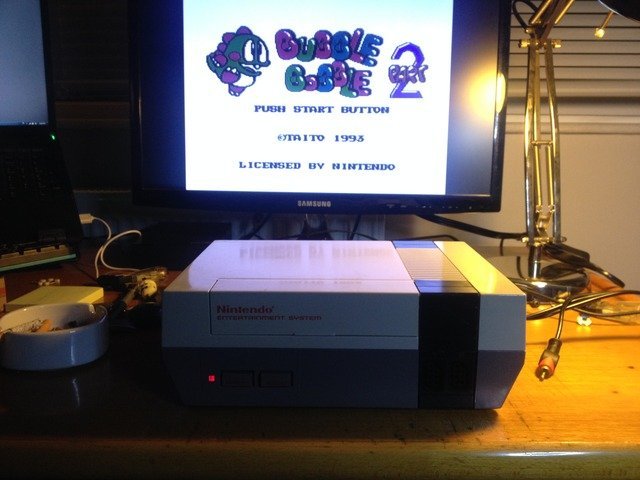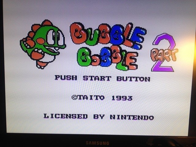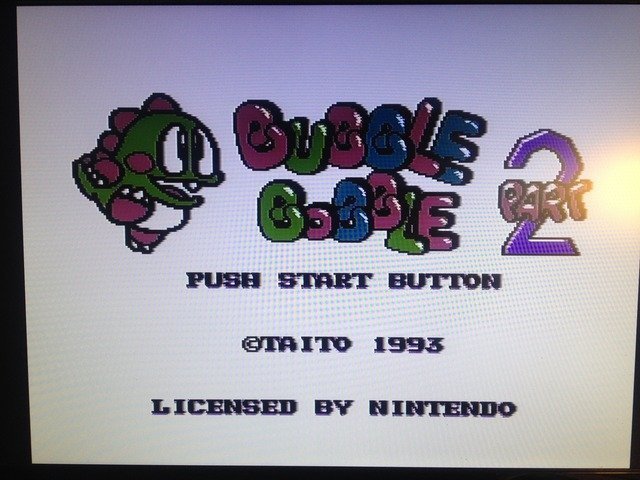 Bu deneme işleri için genelde Bubble Bobble 2 kartuşunu kullanıyorum. Hem kendi yaptığım repro olmasından dolayı kıymetsiz (en azından başına bir şey gelirse EPROM'ları yeniden yazabilirim) hem kontakları tertemiz hem de renkleri capcanlı bir oyun, renkeline vs alıştı gözlerim.