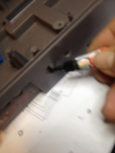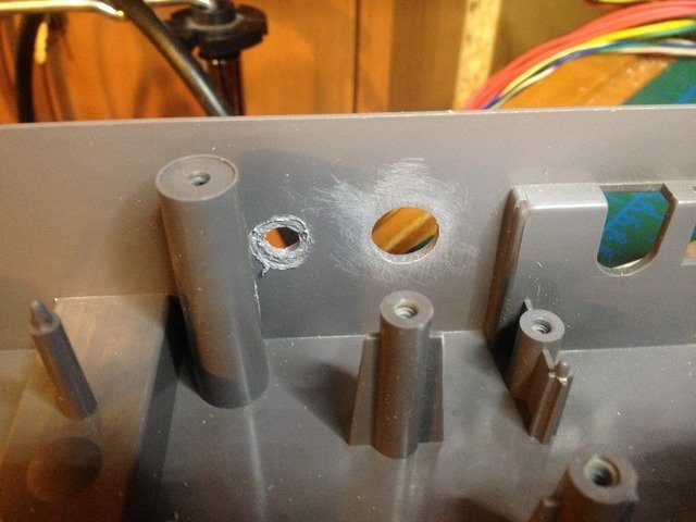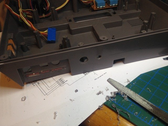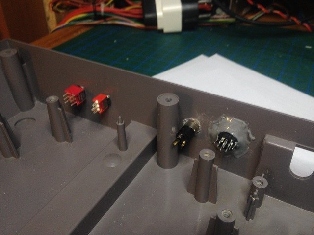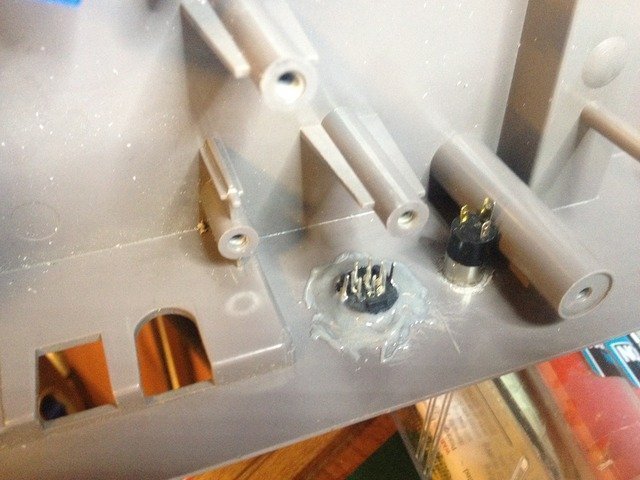 Neyse, bu sebeple kitin içinden çıkan standart konnektörler ile moda başladım. Önce uygun delikleri açtım. Delikleri kasanın arka kısmının tepesinden 2cm aşağıda (diğer konnektörlerle aynı hizada olması için) açtım.