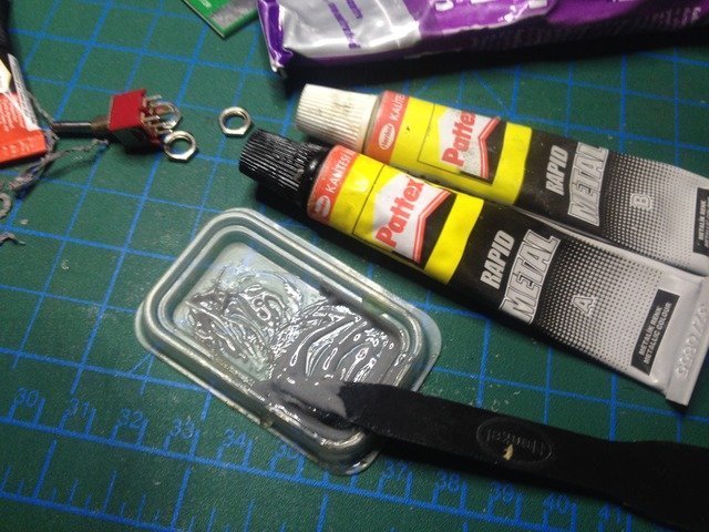 Bundan sonra sıra epoxy'yi hazırlamaya geliyor. Ben bu iş için metal yapıştırmak için kullanılan türde 2 parçalı epoksi kullanmayı tercih ettim. Hem çok daha sağlam oluyor hem de rengi NES kasasına daha uygun