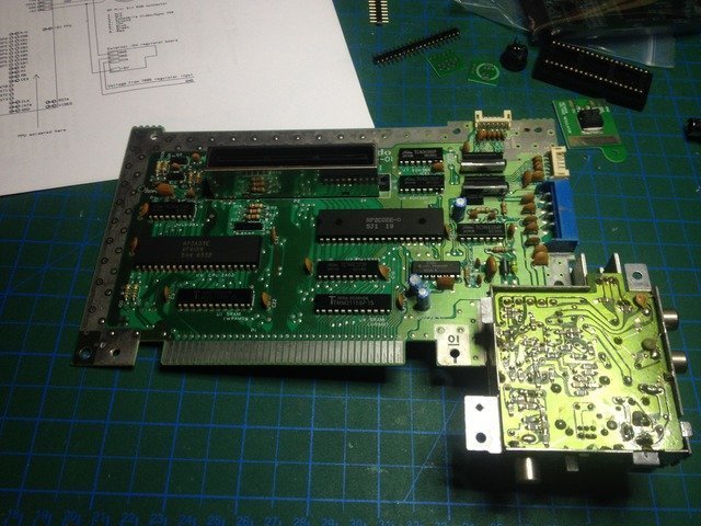 Konsol temizlendikten ve bakımı yapıldıktan sonra (ki güç soketini ve modülatörün içindeki bütün elektrolitik kondansatörleri v.s. de yeniledim - maalesef PC bakımı sırasında uçurduğum verilerin içinde o resimler de vardı) ilk denemeyi yapıyorum...