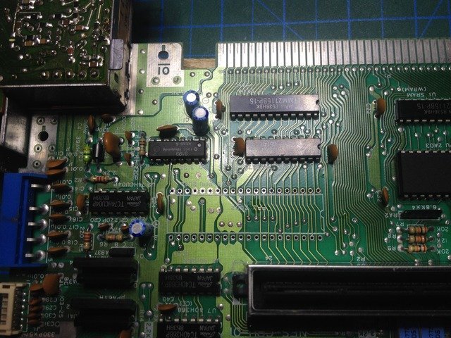 Sonra 40 bacaklı PPU'yu PCB hatlarına zarar vermeden sökmemiz gerekiyor. Maalesef NES'de soket kullanılmamış Sökmemiz gereken PPU bu (Yanlışlıkla CPU'ya girişmeyin zira o da 40 bacaklı)