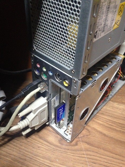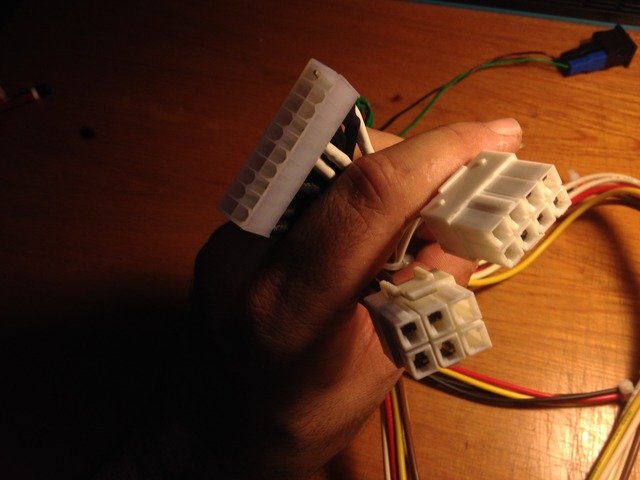 Daha sonra elimdeki Naomi ile birlikte gelen güç kablolarının diğer uçlarını keserek standart PC güç kaynağına bağlanabilir bir sokete monte ettim.
