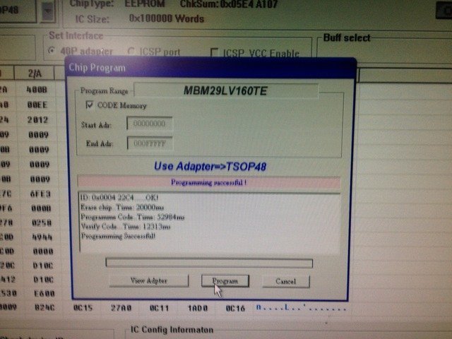 Sonra yeni bir 29LV160TE-90 flash çipini 3.17 versiyon atmak için programlayıcının uygun adaptörüne takıyoruz.
