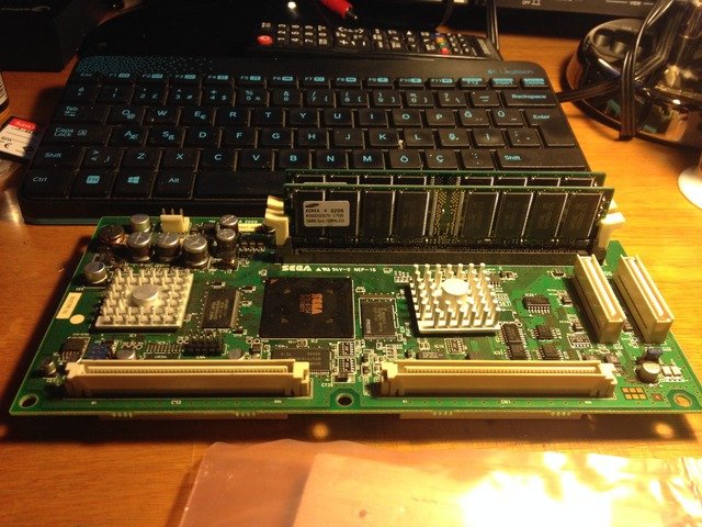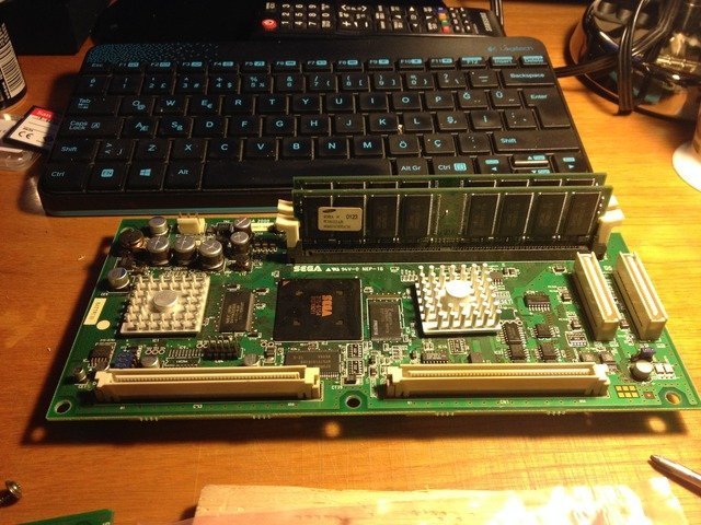 Bir başka keyfe keder işlem ise NetDIMM'in hafızasını upgrade etme işlemi. Bazı oyunlar (çok değil) NetDIMM'de 512MB RAM istiyor. Standart olarak üzerinde 512MB RAM olan NetDIMM'ler var elbet piyasada ancak pahalı oluyorlar. Benim aldığım NetDIMM'im ise sanırım 256MB'lık dı ve 2 adet 128MB'lık SDRAM içeriyordu.