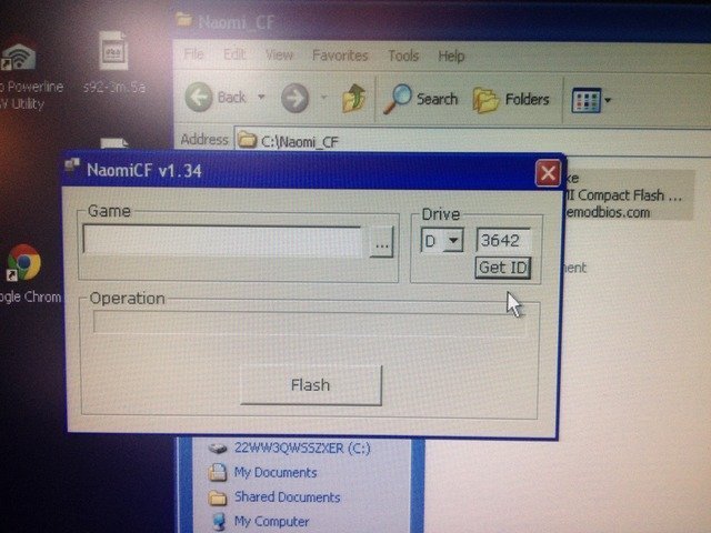 Sonra NaomiCF yazılımını açıp kriptosu kırılmış oyun ROM'unu seçip (Bu özel elden geçmiş oyun ROM'Larını internetten bulabilirsiniz. MAME ROM'ları değil bunlar ama!!!) CF'e atıyoruz. ID alanına daha önce not ettiğimiz ID'yi yazmayı unutmayın. Gerçi NaomiCF yazılımı okuduğu son ID'yi bu alanda tutuyor. GetID butonuna da basmayın yanlış ID veya 0000 gelir.