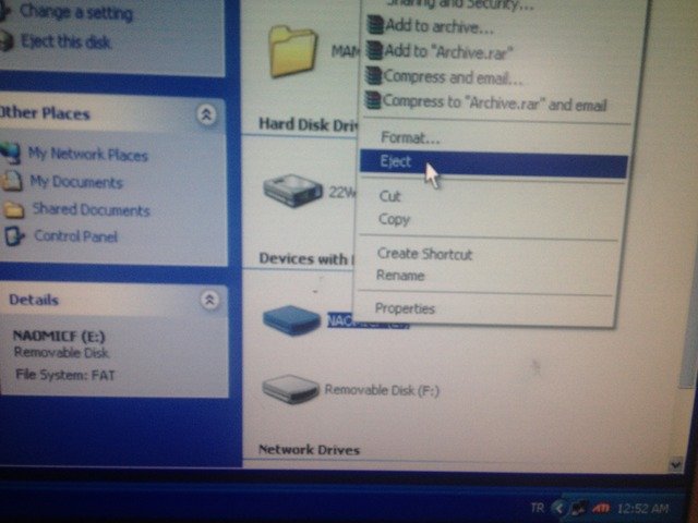 Son olarak USB'den takılı olan CF kartı "haşırt" diye çıkartmıyoruz doğru düzgün çıkışını yapıyoruz (BUrası önemli!!!)