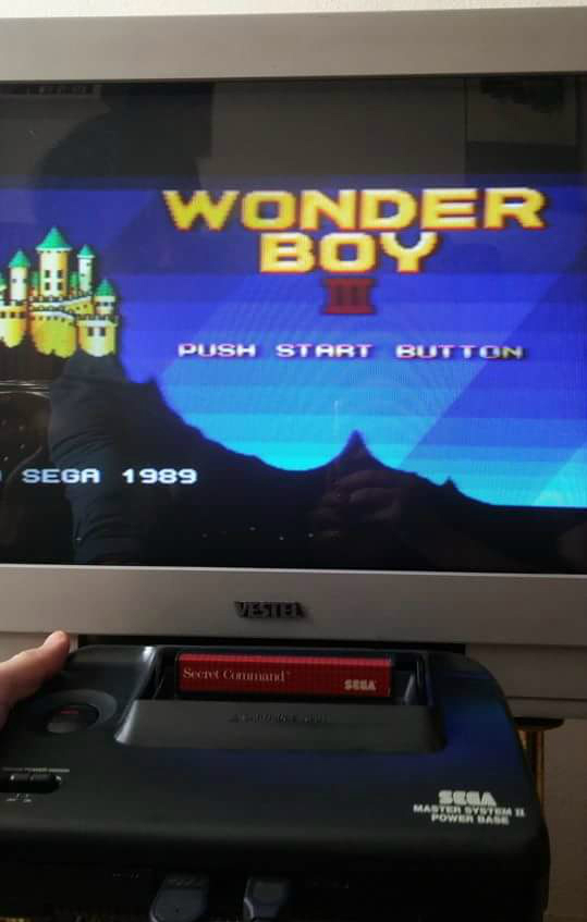 2-3 ay önce Sega Master System'im için Secret Command kartuşunu satın almıştım. Açıkçası aldığımdan beri de bırakın oynamayı, çalışıp çalışmadığını bile denememiştim (ki bu rahatlığım yüzünden ağzımın yandığı da olmuştur). Her neyse, dün de eşimle birlikte Secret Command'i oynayayım dedim, ne de olsa oyun iki kişilik. Fakat kartuşu taktığımda ne göreyim, kartuşun üzerinde Secret Command etiketi olmasına rağmen içinde Sega Master System'in en değerli ve en başarılı oyunlarından biri olan Wonder Boy 3: The Dragon's Trap var! Bir Metroidvania hayranı olarak da inanılmaz sevindim, çünkü bende olmayan ve oynamak istediğim bir oyundu bu. Resmini aşağıda görebilirsiniz.