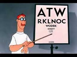 Bu tabloyu görünce Bugs Bunny'nin göz doktoruna gittiği bölüm aklıma geldi, Bugs Bunny üstteki harflerin tamamını bir çırpıda okur ve en altta minnacık yazılı olan kağıdı basan matbaanın adınıda okur.