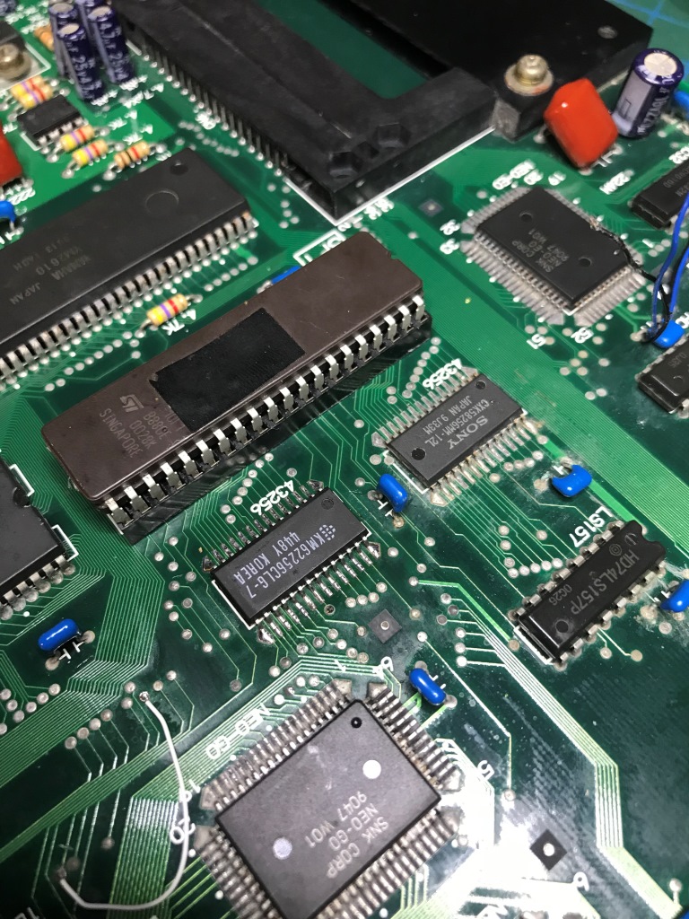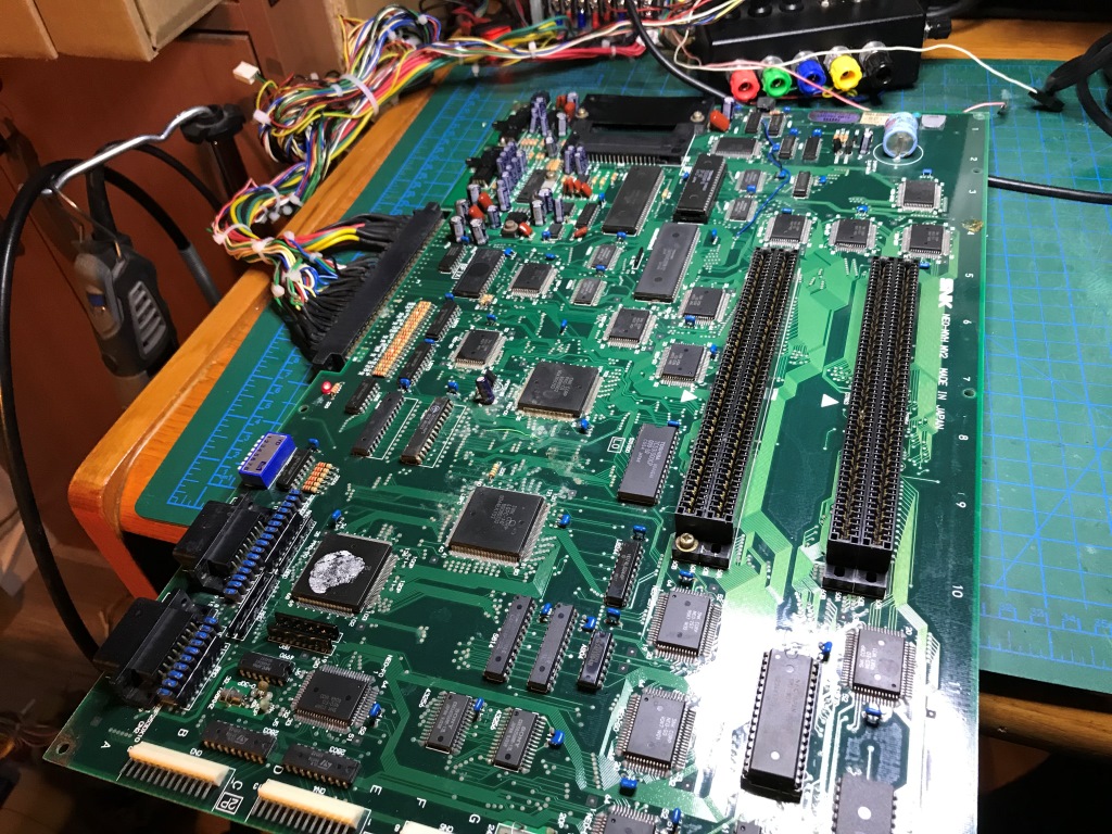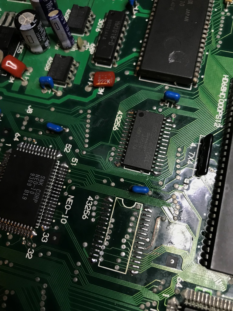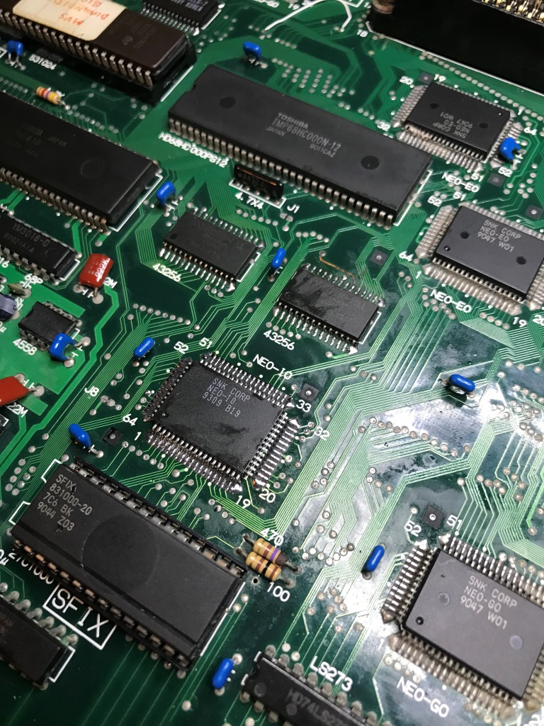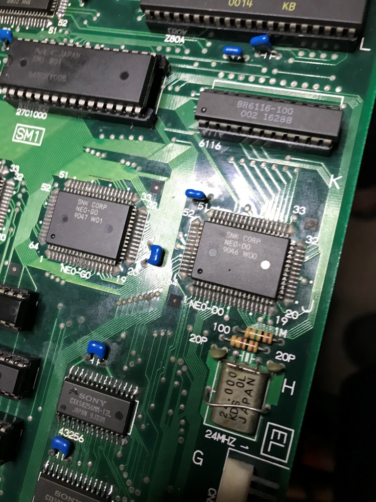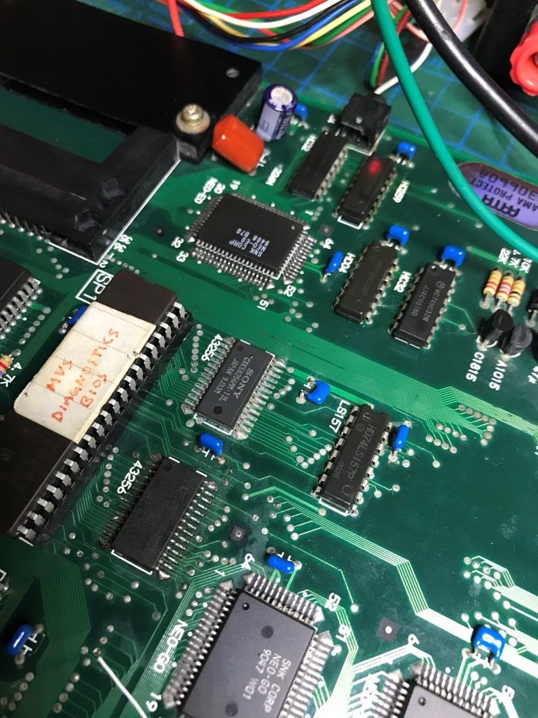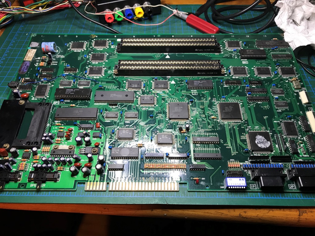 Bu kart bilinen tüm Neo Geo arızalarını karşıma sırayla çıkartmaya devam ediyor. Şaka gibi. Kendimi "Neo Geo MVS tamirat okulu" mezuniyet sınavında gibi hissetmeye başladım ama işin tadı kaçmaya başladı...