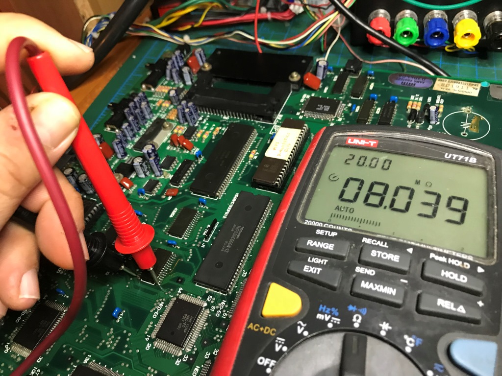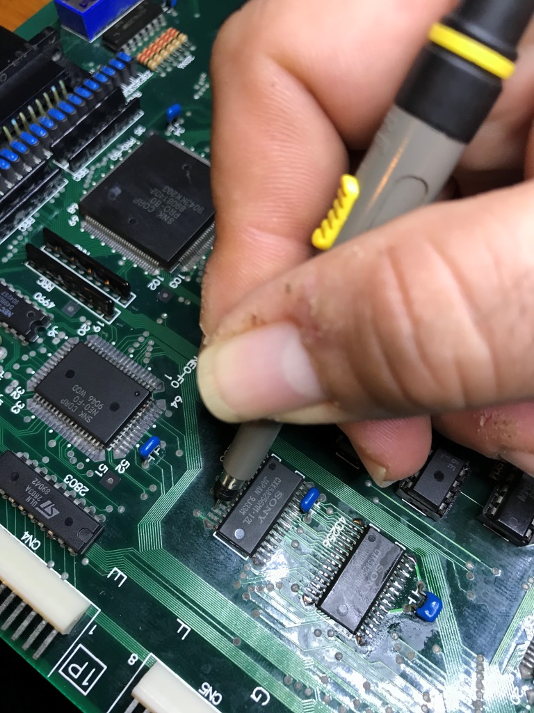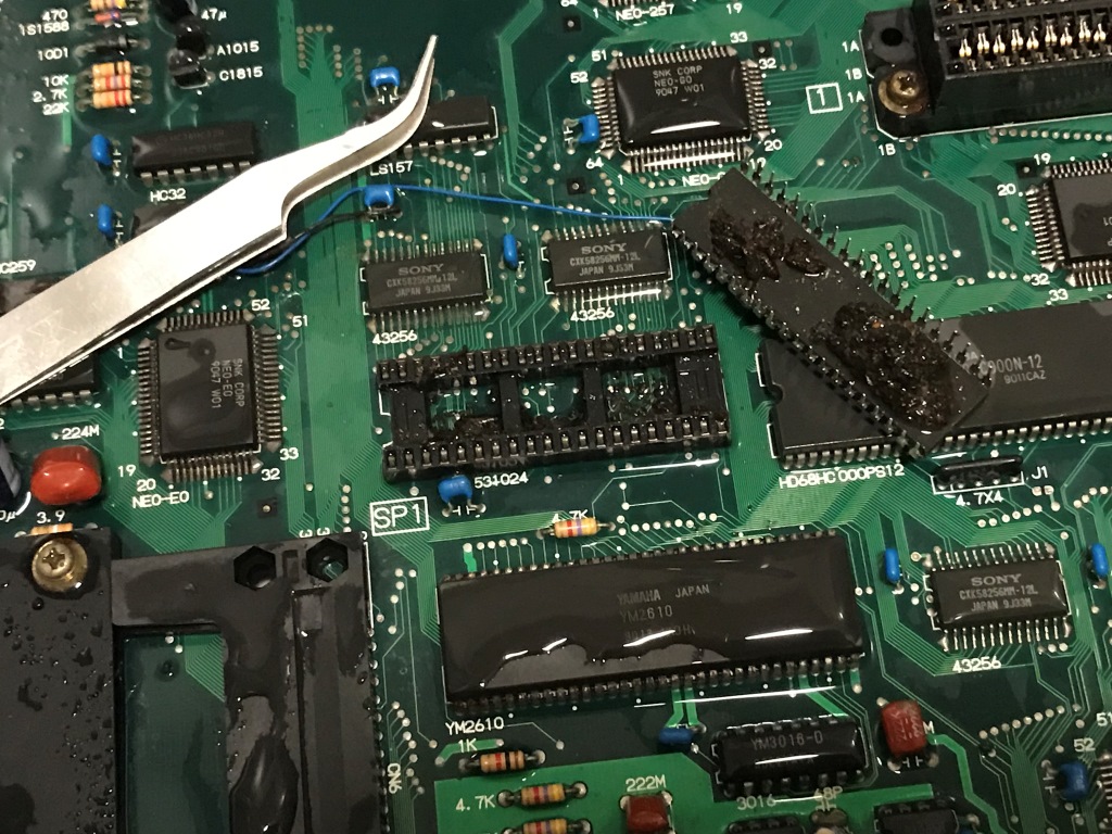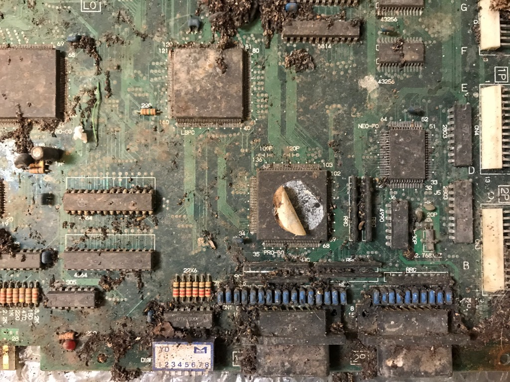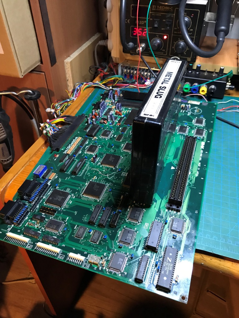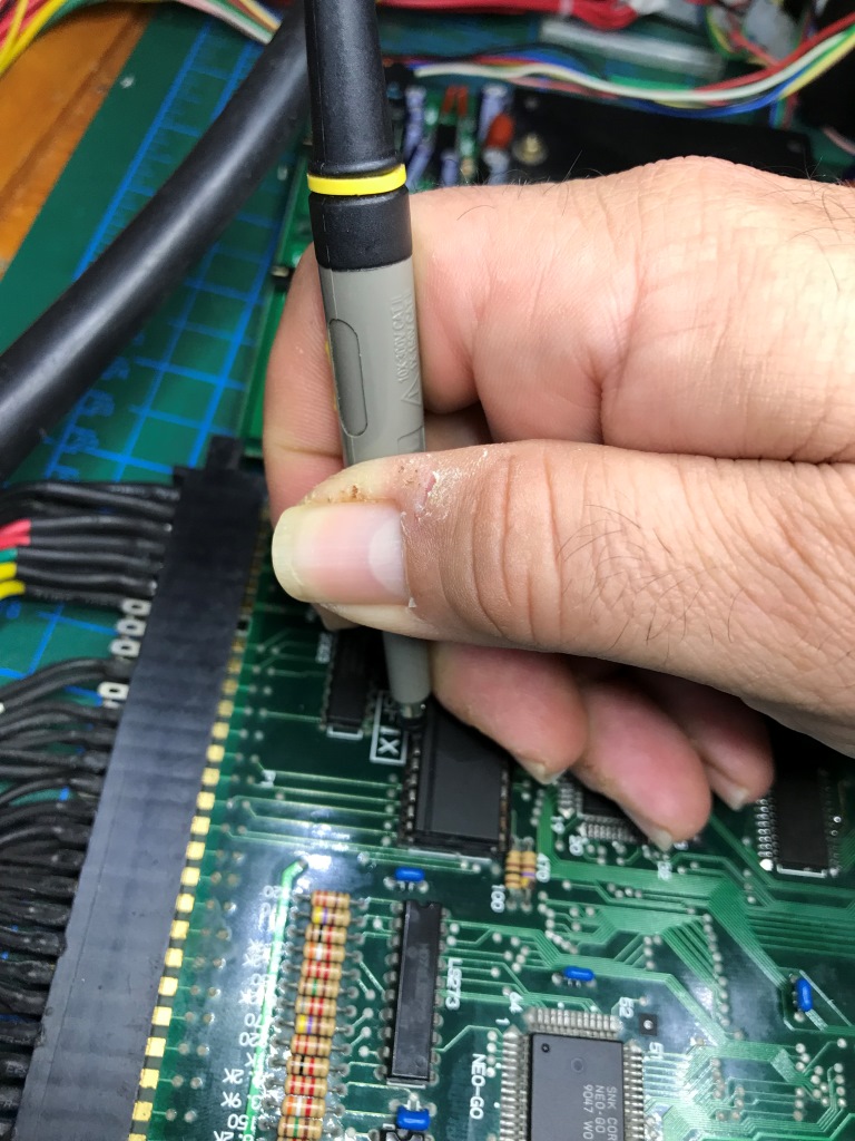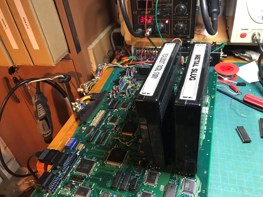 Bu kart bilinen tüm Neo Geo arızalarını karşıma sırayla çıkartmaya devam ediyor. Şaka gibi. Kendimi "Neo Geo MVS tamirat okulu" mezuniyet sınavında gibi hissetmeye başladım ama işin tadı kaçmaya başladı...