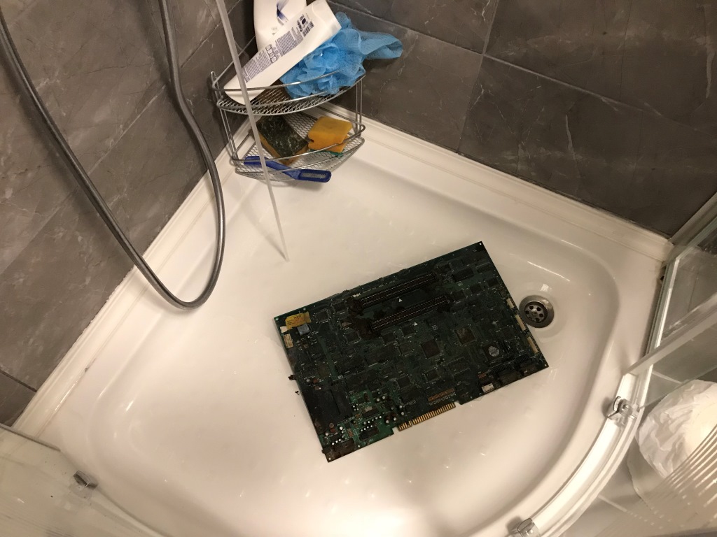 Soketli çipleri altlarındaki böcek yuvalarını temizlemek için sökmeyi unutmuyoruz. Elbette ki kartın mevcut durumundan dolayı bu sökme işini de duşta yapmak zorunda kaldım