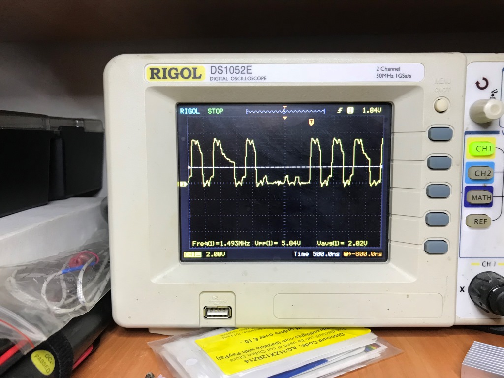 İncelemelere devam ediyorum ve adres/veri hattınındaki sorunu daha iyi anlayabilmek için tüm adres ve veri hatlarını osiloskop ile kontrol ediyorum. Eğer bir kopukluk varsa bu şekilde ortaya çıkacaktır.
