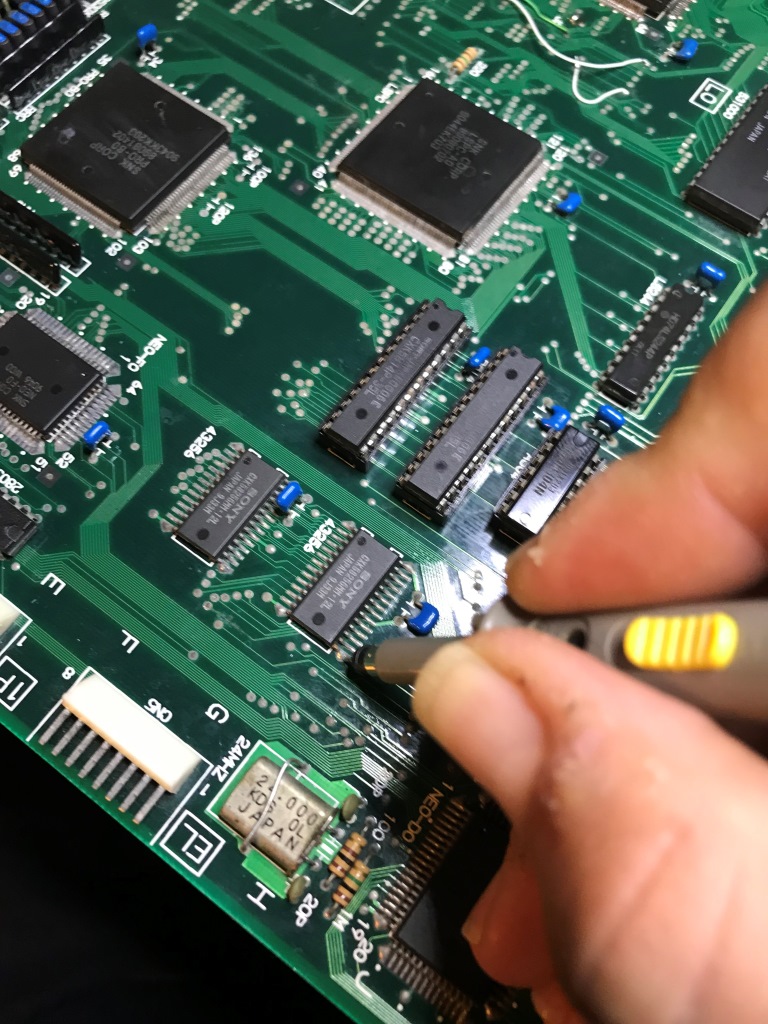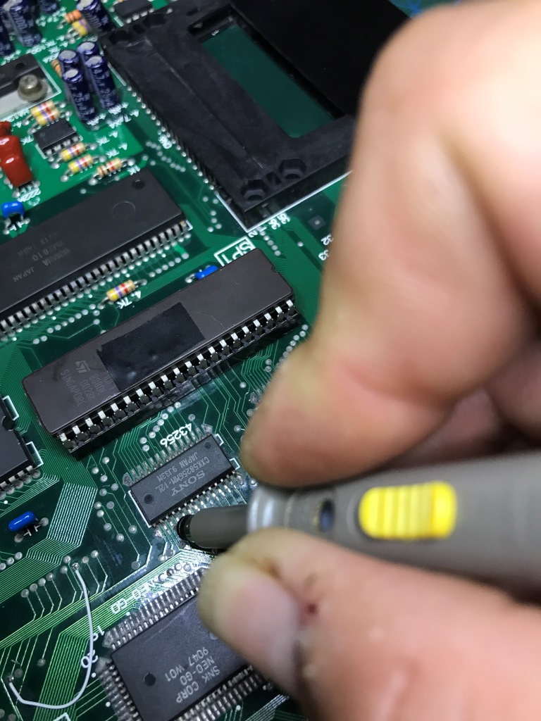 Esas konumuz click-of-death, yani Neo Geo'yu çalışmaktan alıkoyan ve CPU'ya devamlı reset gönderilmesini sağlayan durumu çözmek. Maalesef bu sorunun öyle nokta atış tek bir çözümü yok zira sorunun tek belirli bir sebebi de yok...