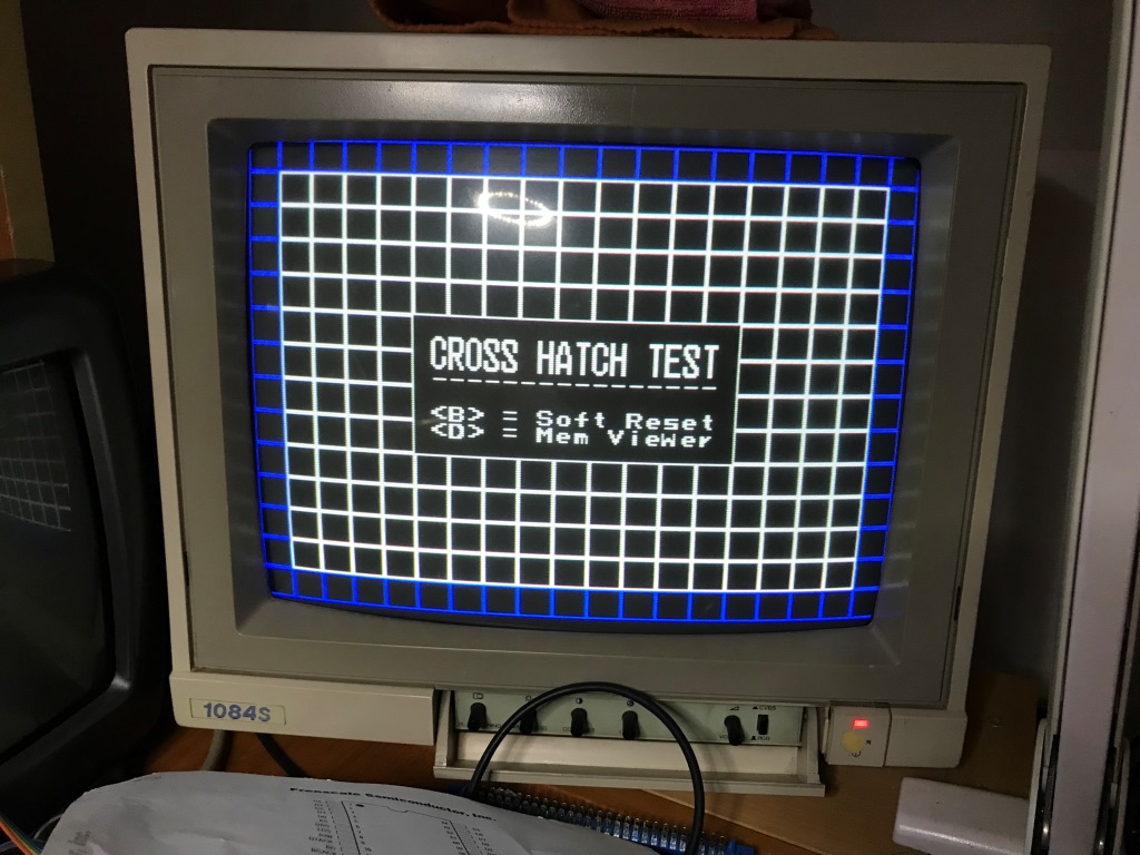Ancak ekran bu şekilde karman çormanken sorunu anlamak güç. Bu sebeple bir an için odağımı ekran görüntüsünü düzeltmeye ayırıyorum. Tabi bu sorunu çözmek için CPU'nun zırt pırt reset atması hoş değil. Bunu engellemek için watch-dog'u devre dışı bırakmak lazım. Bunun için bütün MVS'ler üzerinde bir jumper var. Onu bulup bir parça lehimle kapatıyoruz.
