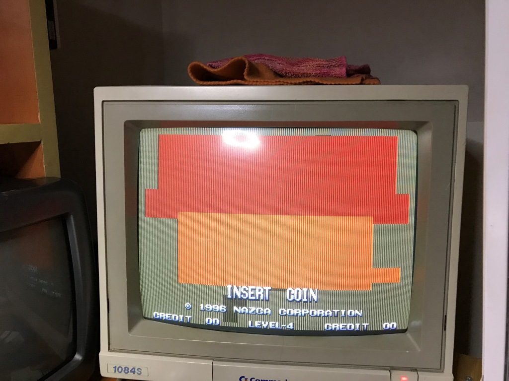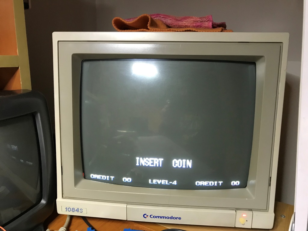 Bu düzenek benim masamdaki JAMMA-supergun düzeneğinden doğal olarak farklı. Bu yüzden 1084 monitörüme giden normal ses bağlantılarımı sötüm (bu tür farklı kartlar durumu için zaten soketli yapmıştım) ve sisteme haricen bir hoparlör bağladım.