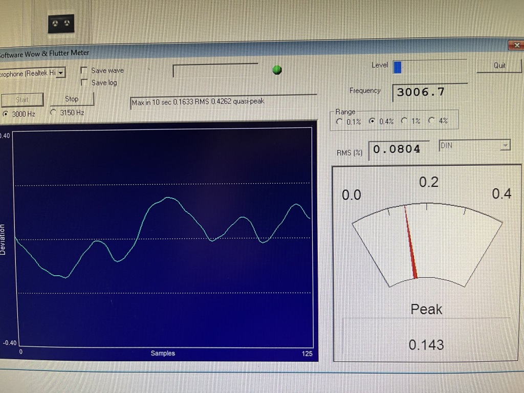 Ayrıca DD serisinin en önemli özelliği olan düşük Wow & flutter değerini tekrardan yakalayabildik mi onu da test ediyorum. Aslında W&F ölçen harici cihazlar mevcut ama bunu PC de çalışan bedava bir program ile de ölçmek mümkün.