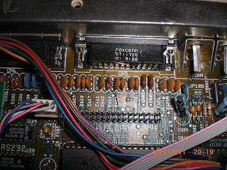 Yukarıdaki iki resimde ufak bir kablo atlatma göruyoruz, bu kablo ile DF1'i kullana biliyoruz, Amiga üretilirken DF1,DF2 ve DF3'ün motorX bağlantıları internal floppy soketinde bulunmuyori her halde böyle birşey çıkacağını 25 sene önce düşünmediklerinden bu sinyali sadece external floppy soketine koydukalrından bu bağlantıyı yapmamız gerekli, hatta UFE'de 8 MB SDram olduğunu düşünürsek DF2 ve DF3 'üde Tolga'nın yapması sorun olmıyacak