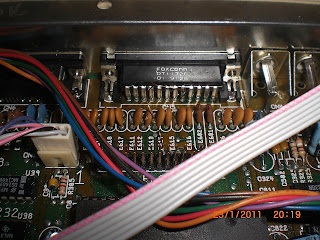 Yukarıdaki iki resimde ufak bir kablo atlatma göruyoruz, bu kablo ile DF1'i kullana biliyoruz, Amiga üretilirken DF1,DF2 ve DF3'ün motorX bağlantıları internal floppy soketinde bulunmuyori her halde böyle birşey çıkacağını 25 sene önce düşünmediklerinden bu sinyali sadece external floppy soketine koydukalrından bu bağlantıyı yapmamız gerekli, hatta UFE'de 8 MB SDram olduğunu düşünürsek DF2 ve DF3 'üde Tolga'nın yapması sorun olmıyacak