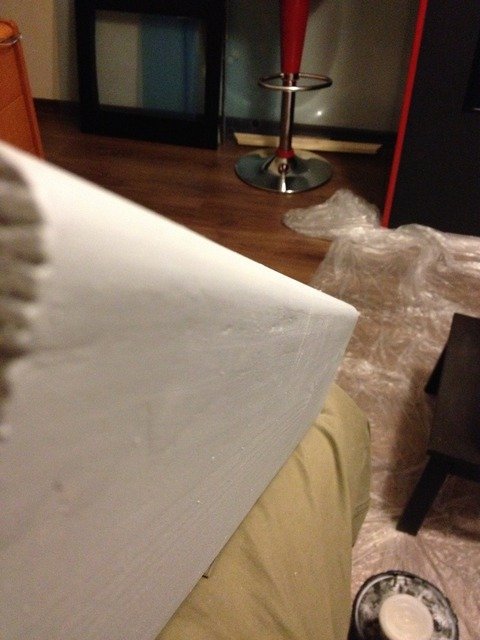 Bir gün kurumaya bıraktığımız ilk kat astardan sonra şimdi yine gözümüze çarpan özürleri macunlayarak işe başlıyoruz.