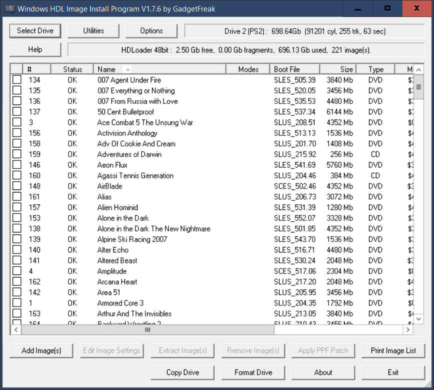 Küçük bir bilgi PS2 hdd'sine yüklenen oyunlar partisyonlarda bulunur, yüklenen son oyundan başlayarak (Alfabetik sıralama değil, yükleme sıralaması) silinmesi durumunda sorun yok ama, baştan yada ortalardan oyun silinme durumunda oyunların kapladığı alan kadar hiçbir işe yaramayan artık kullanılamayacak ve oraya bir daha oyun yüklenemeyecek alanlar meydana getirirsiniz. Winhiip'te bu alanlar fragments olarak geçer.