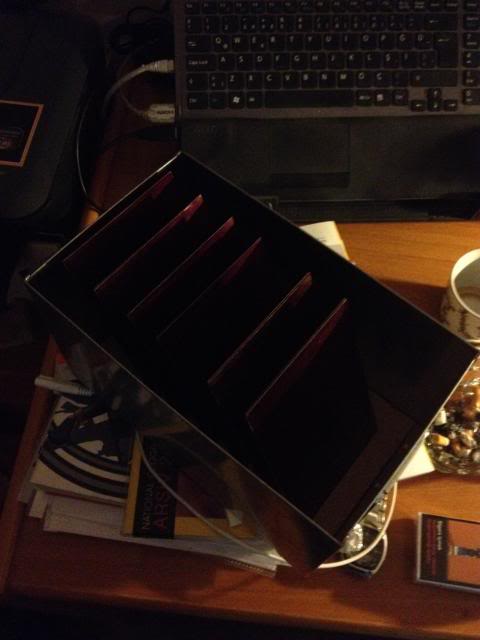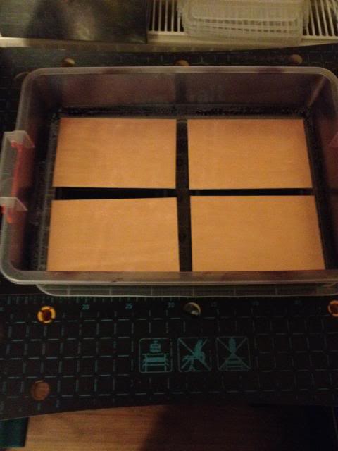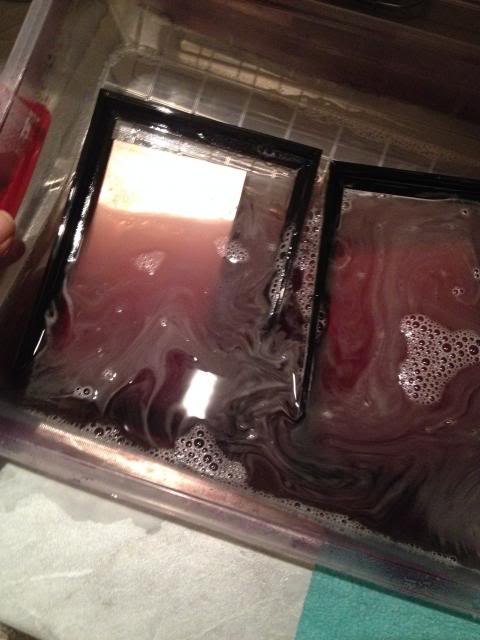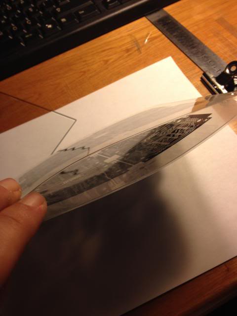 sonra asetatın sadece bir kenarına sürdüğüm tutkal kuruyana kadar biraz beklemem gerekiyor. Bunu en iyi pozlama kutusunun içine koyarak sağlayabildiğimi farkettim...