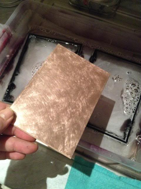 Daha önce asetatı "ters" çevirip bakır plakete mürekkepli kısım değil de, arkasını temas ettirerek pozlama denemelerim olmuştu. Sonuçta evet mürekkep bakırlı plakaya temas etmediği için çizilme/yapışma sorunu ortadan kalkmıştı ancak bu sefer de "bulanık görüntü" problemi yaşamıştım. Sebebi, siyah izler ile positiv 20 kaplı yüzey arasında yaklaşık 0.5 mm uzaklık olmasından dolayı "focus" kayıyordu.