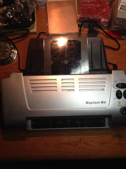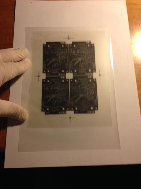 Problem PCB'leri pozlamak için gereken "güncel" PCB şablonum olmadığını farkettim. PCB tasarımında bir kaç değişiklik yapmıştım, bir de şablonu uzun ömürlü olsun diye bir koruma tekniği geliştirmem gerekti (bunun için malzeme bekledim 1-2 gün).
