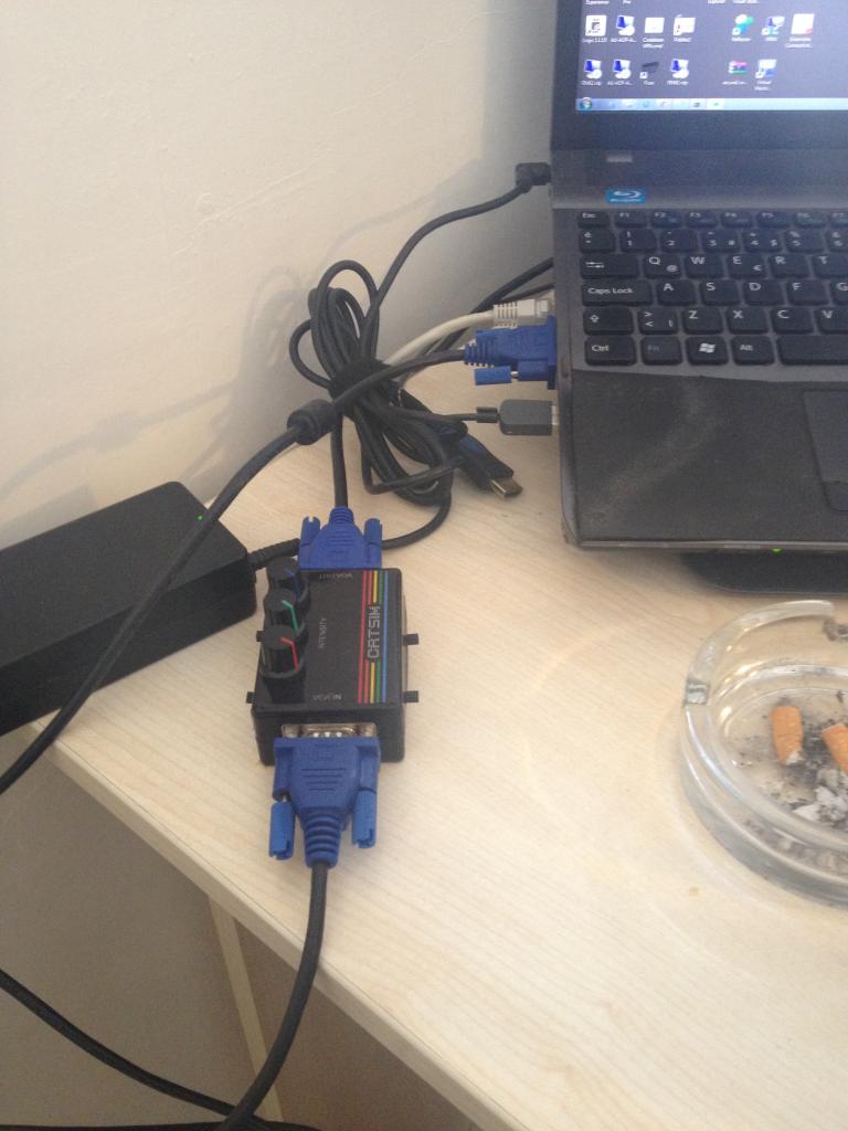 Neyse, kısaca ofiste sahiplerini bekleyen 1-2 CRTSIM'den 1 no'lu olanı aldım ofisteki HP LCD'lerin kutularından çıkmış (ve DVI/HDMI ile bağladığımızdan kullanmadığımız) kaliteli VGA kablolar ile denedim.