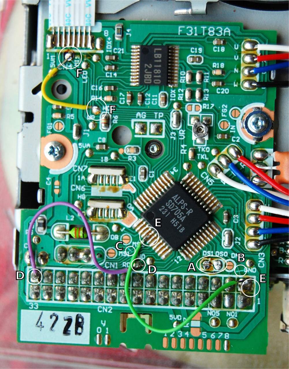 Diğer disket sürücü Mitsumi D359M serisindendi. Yukarıda verdiğim 2. linkteki Mitsumi D359T serisi ile aynı değil devre kartı. Gerçi onun da buldum tarifini ama sürücünün devre kartına ulaşmak çok zor. Bütün mekanizmayı sökmek gerekiyor.