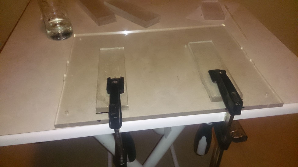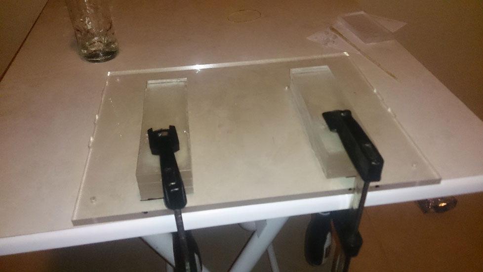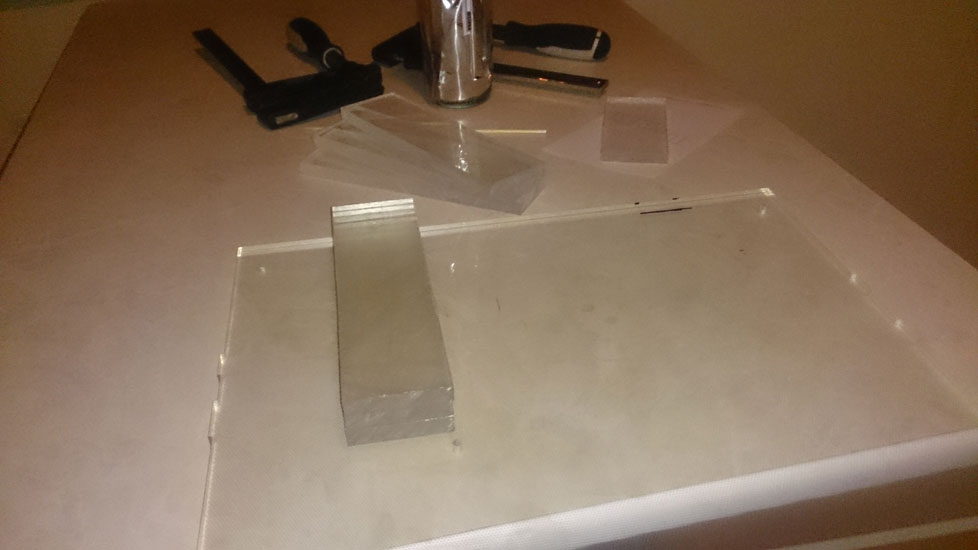 montaj için araya bir platform yapmam gerekiyordu, eski bir LCD monitörden çıkma pleksiye montaj için 3cm takozlar yapmam gerekiyordu elimde 1cm lik pleksi vardı ondan 6 adet parça kesip her parçayı üst üste yapıştırdım