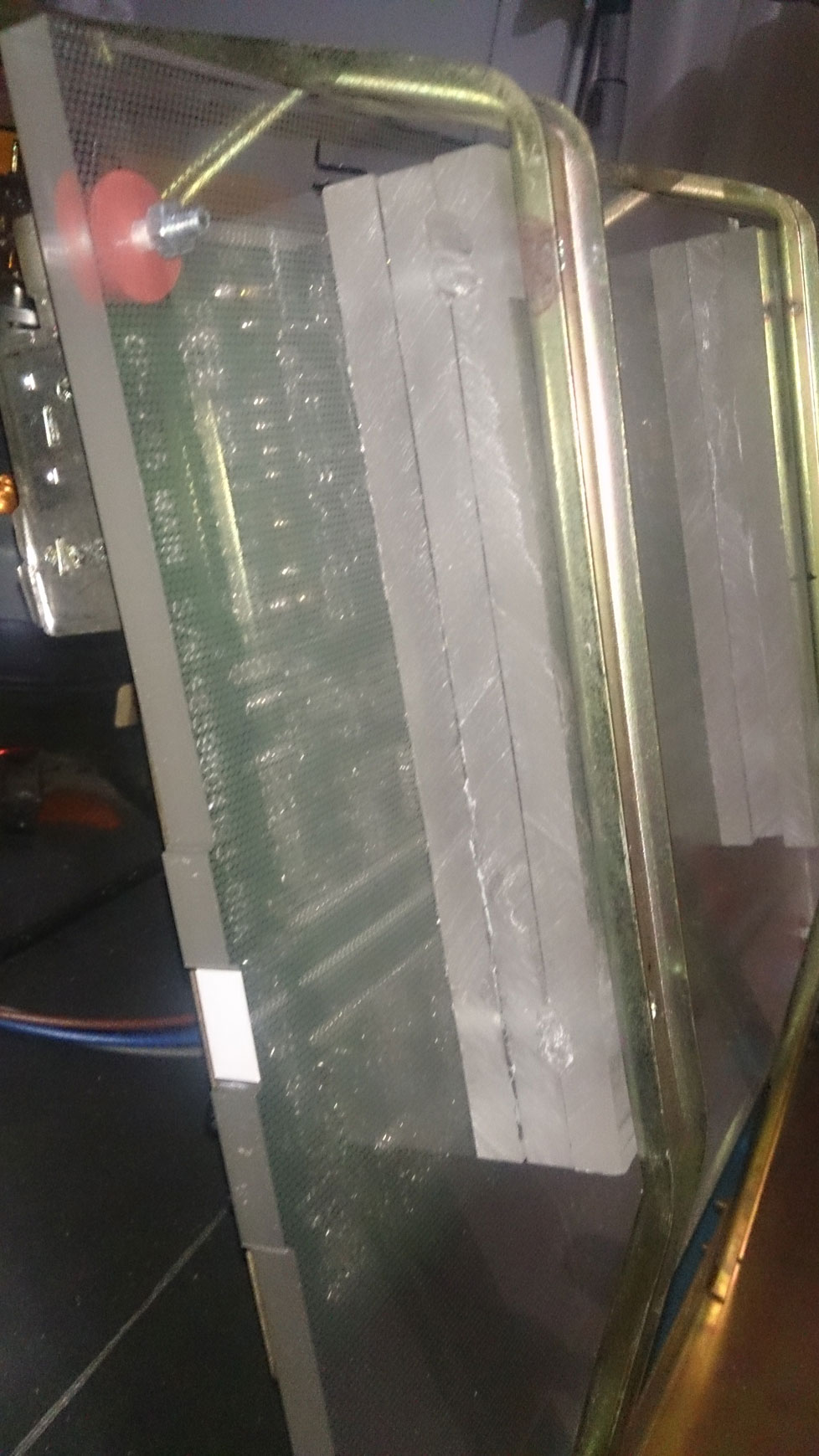 pleksi arkasındaki takozların da yan yüzeyinden montaj için olan deliğe kadar kanal deldim bu kanaldan pens ile somunu içeri sokup şaseye tutunan vidanın sıkılması ile pleksi montaj standı şaseye montajlanmış oldu